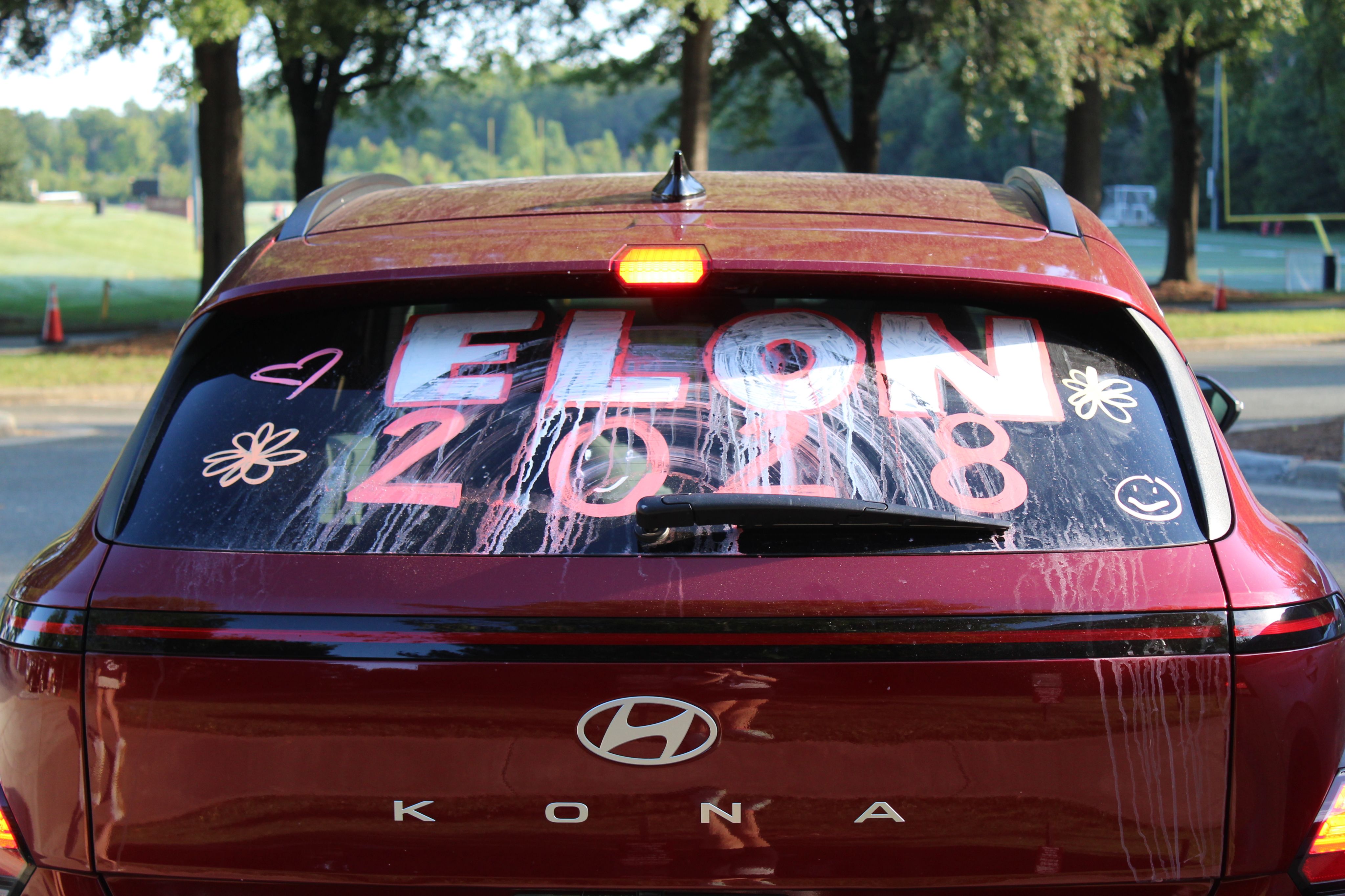 Freshman Katie McCormick's family decorated their car before driving to Elon. Photo by: Nia Bedard.