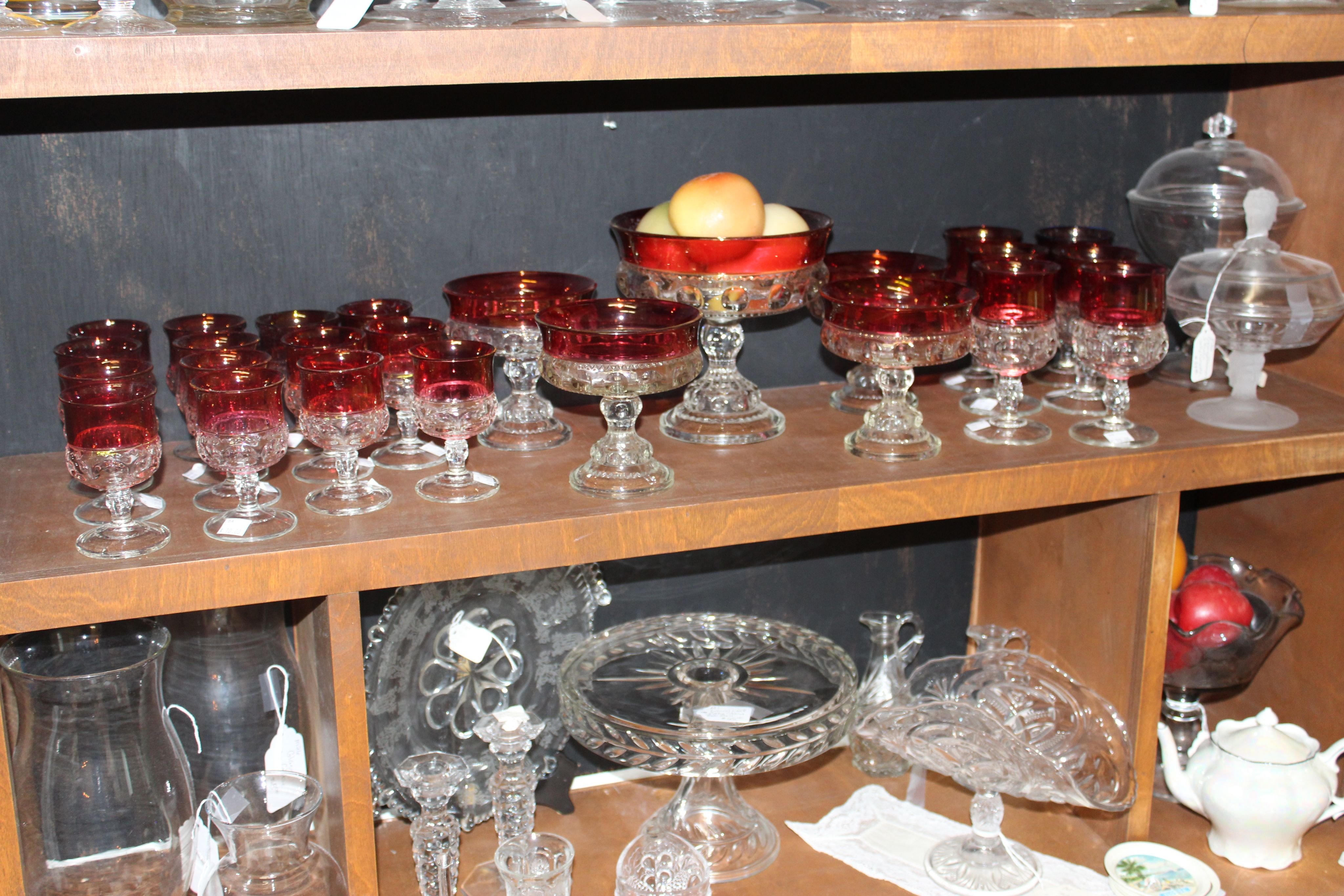 Rare red and crystal Depression glass at Gibsonville Antique Mall.
