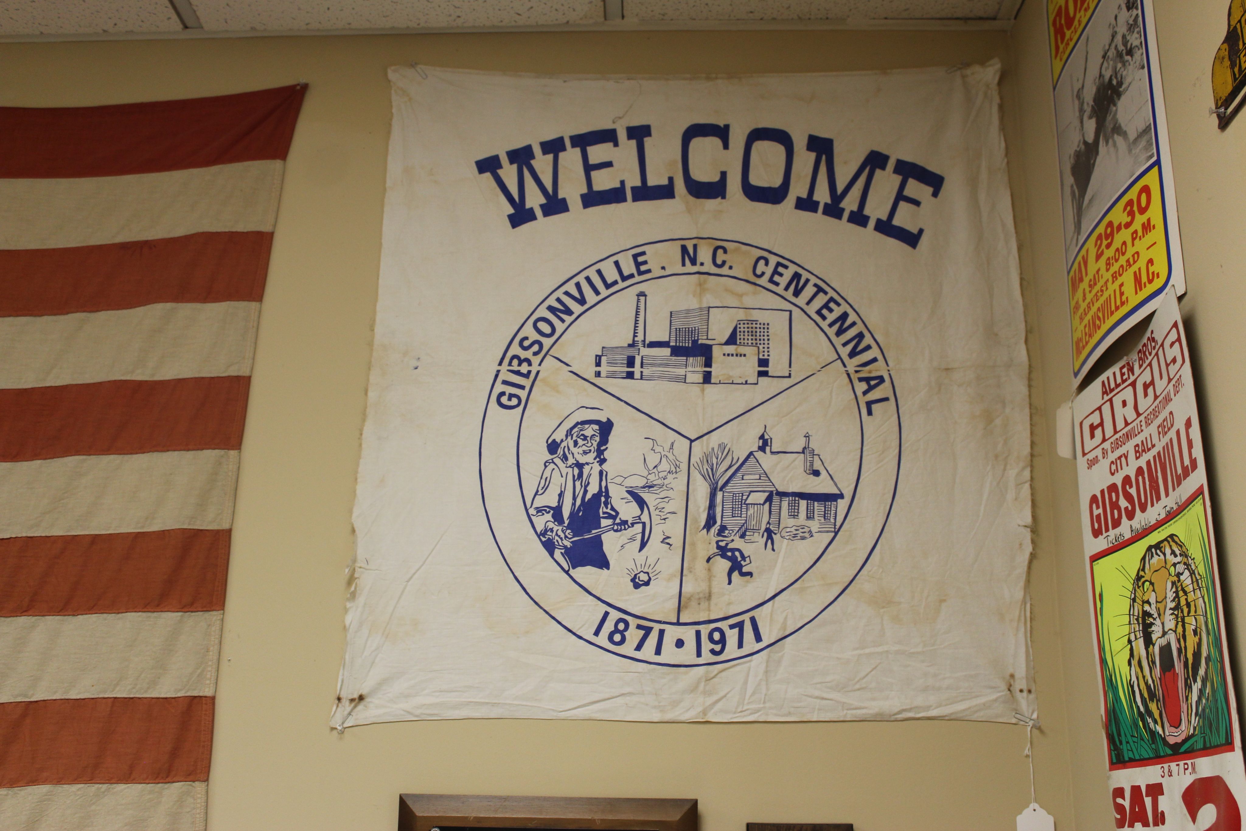 A Gibsonville Centennial flag inside Gibsonville Antique Mall. The town celebrated its centennial in 1971.