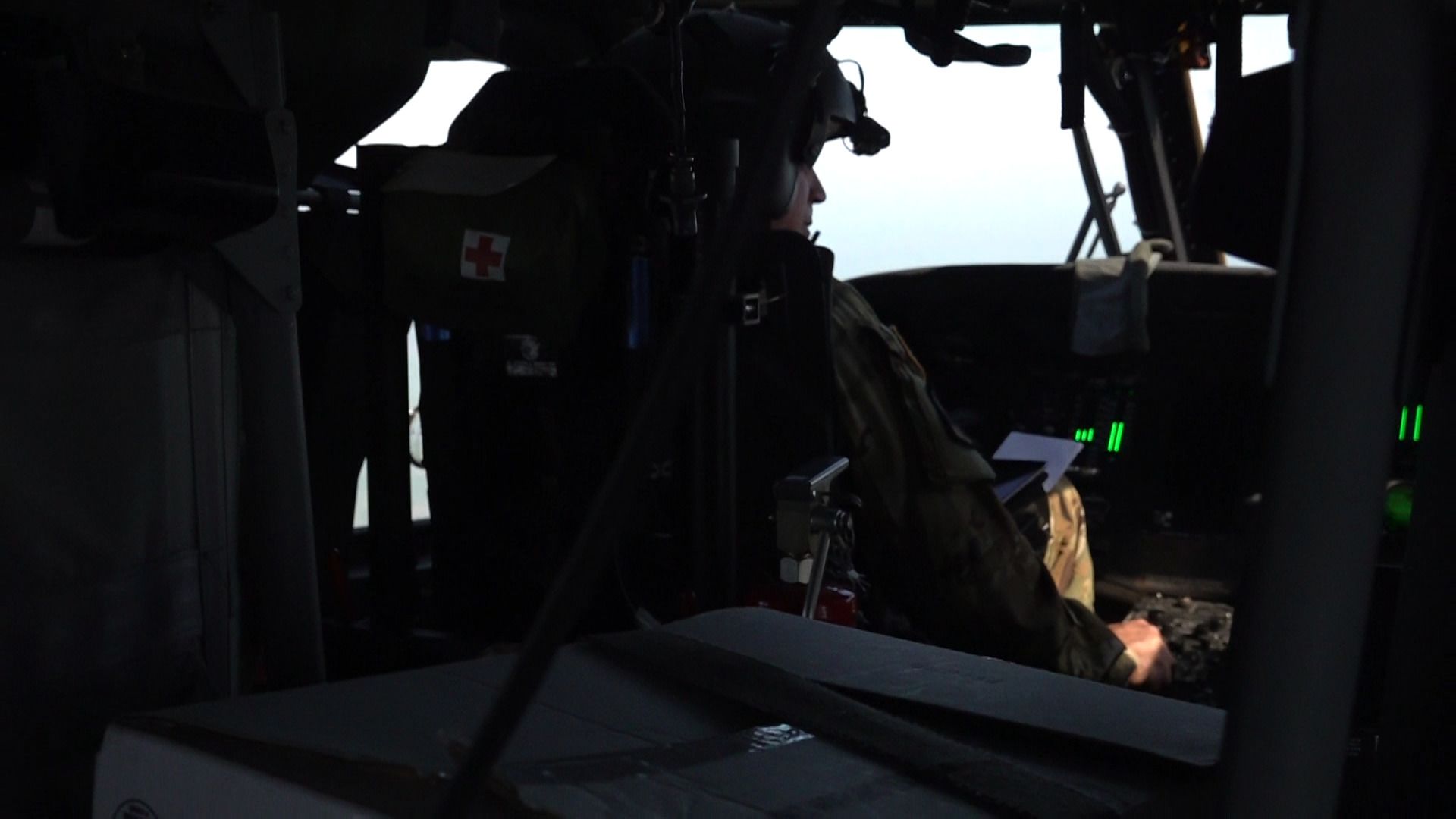 The interior of the Black Hawk on Oct. 8 as the pilot follows the coordinates on a note-card given by command.