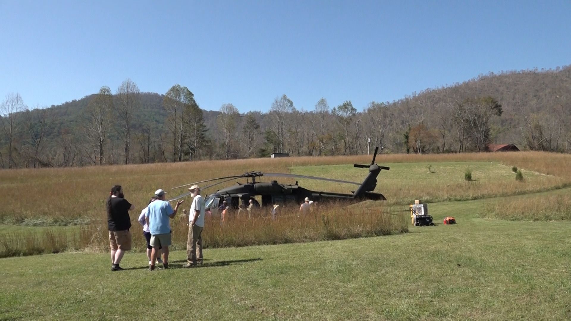 Bull Creek area residents surround the Black Hawk and talk to the crew on Oct. 8.