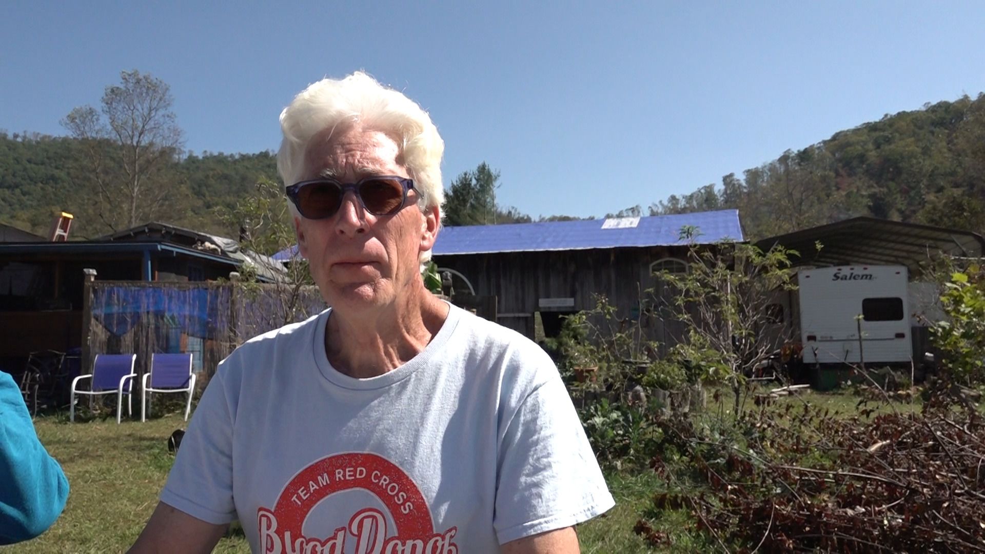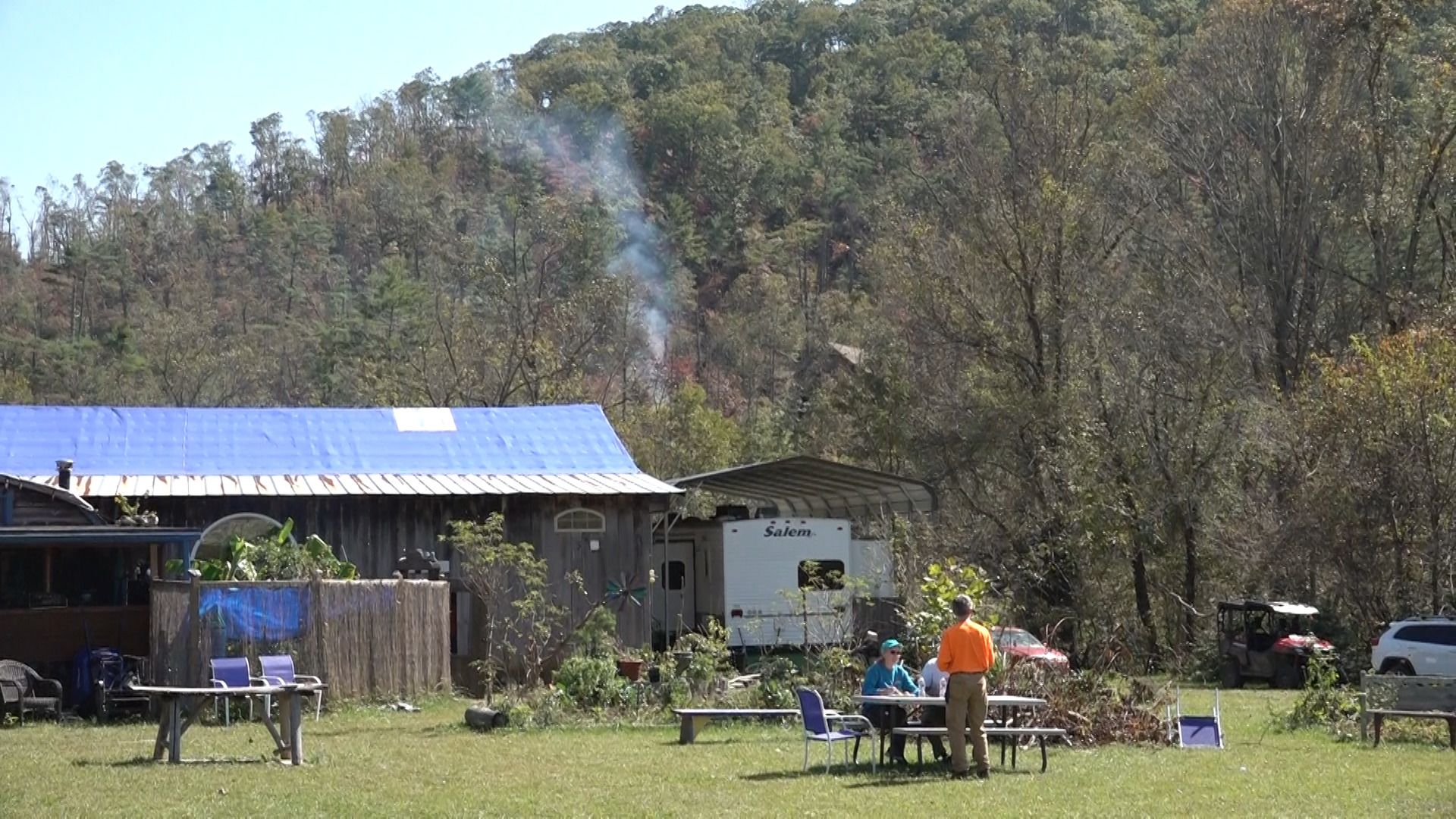 The community has food and water, Lehman said, but needs consistent electricity to begin modern life. Looking past the tarped roofs, Lehman shared how he thought of Helene as a sign of how human life needs to change.
