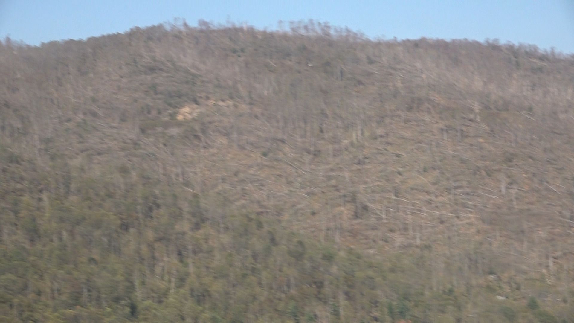 The windswept devastation on the mountains surrounding Bull Creek Valley, observed from the air on Oct. 8.