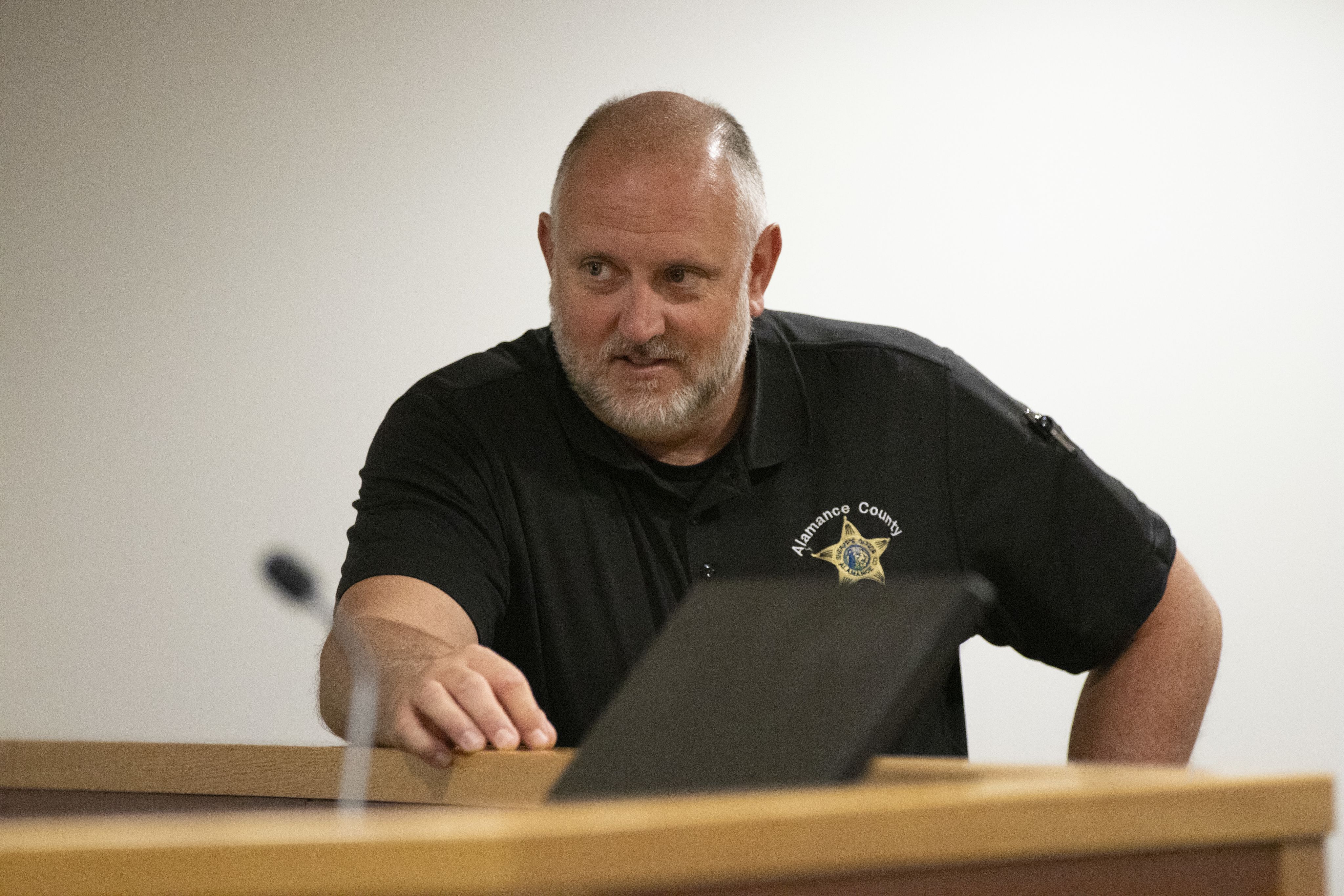 Willam Lowe Jr., school resource officer for Southern Alamance High School, volunteers at Teen Court on Oct. 14 at the Graham Civil Courthouse.