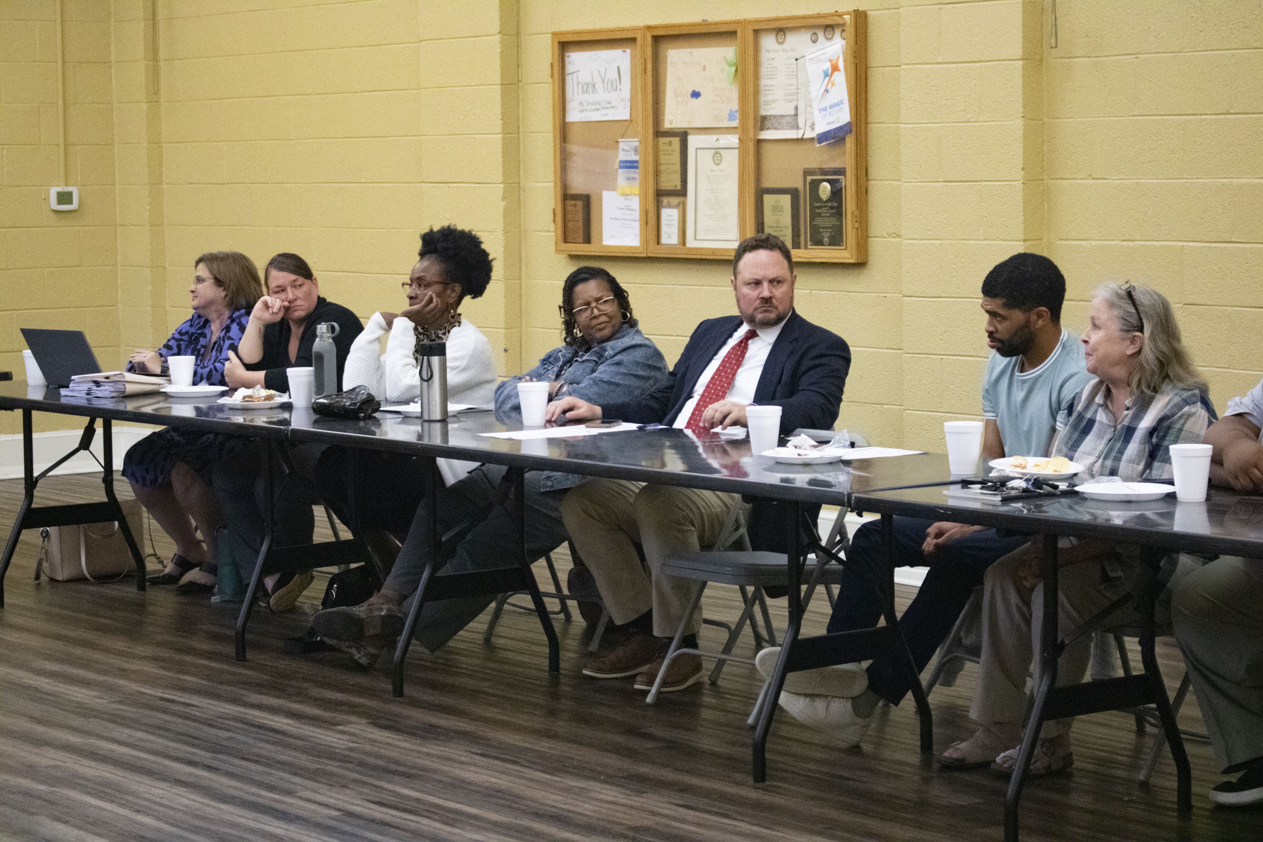 Reid (middle) attends the county’s Juvenile Crime Prevention Committee meeting on Sept. 17 at the Graham Civic Center. The committee holds roughly 25 members who represent school superintendents, police chiefs, the sheriff, the district attorney, county commissioners and more.