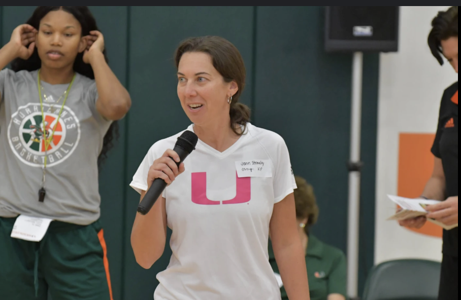 Photo Credit: University of Miami- Strawley addressing the University of Miami women's basketball team.