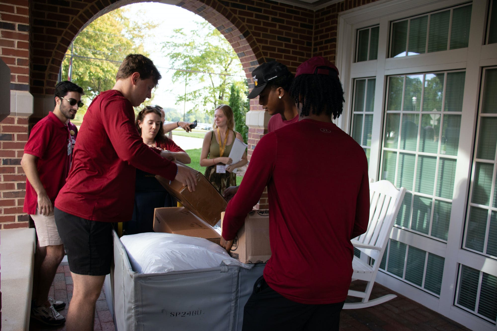 Orientation leaders and peer educators assist families of incoming first-years with moving into the Global Neighborhood on Aug. 19. (Graysen Shirley)