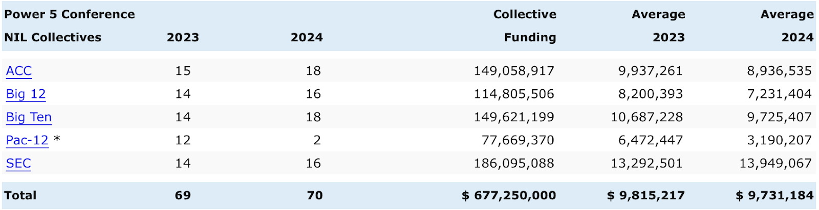 One of the most fascinating aspects to NIL is that when it seems the climax is reached, the boundaries continue to be pushed. Take the insanely lucrative offers top recruits get for example, made possible by wealthy men in support of the institution. Depending on the quality and notoriety of the school, the universities collect funds from anonymous donors. Under the title “Collective Funds”, universities have financial resources pooled together by boosters and supporters to provide compensation to student-athletes for their name, image, and likeness (NIL) rights. These funds are typically organized by collectives associated with specific universities, particularly within the Power 5 conferences. On average, these collectives are expected to generate almost $10 million annually per Power 5 school.