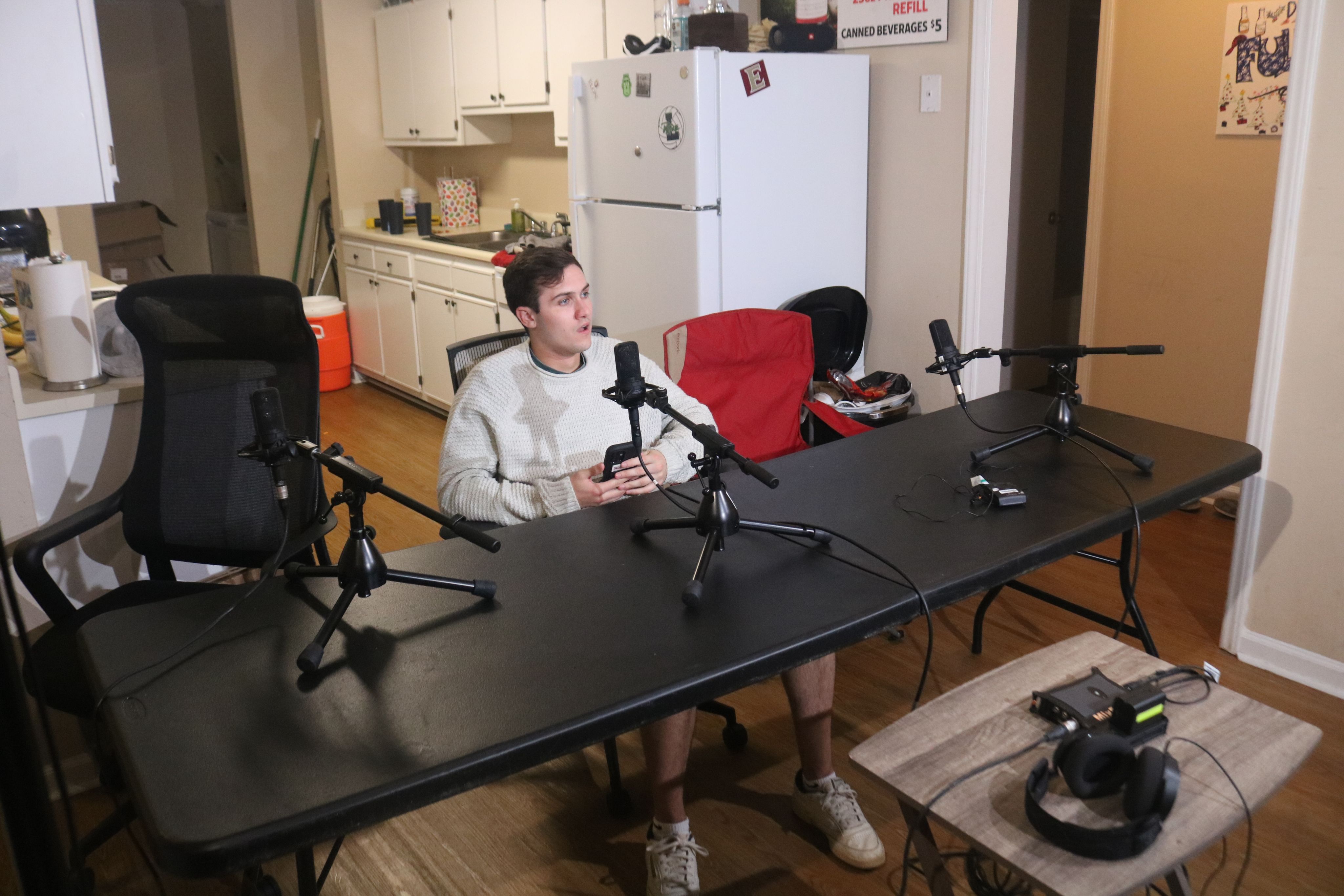 Four days after Kaiser pitched the idea and got Van Vorhees and Puckett on board, the trio had rented thousands of dollars worth of professional-level recording equipment from Elon University’s gear room and had transformed their Old Trollinger apartment into a makeshift debate studio.